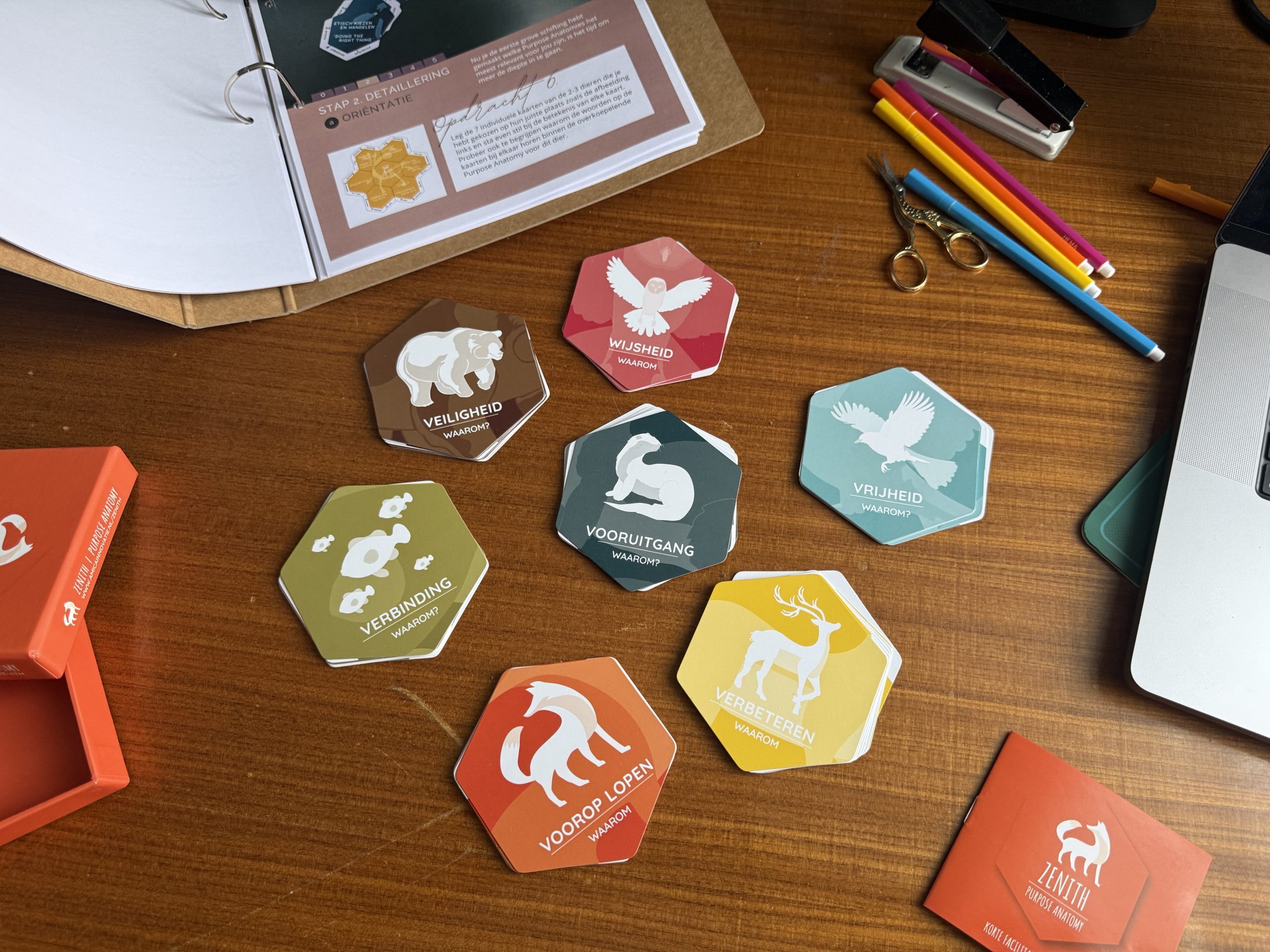 Ben jij op zoek naar het ‘waarom’ in je leven, je bestaansrecht, je missie? Of zoek je naar een gezamenlijke stip op de horizon voor de mensen in jouw bedrijf? Met het Zenith card deck stel je in een handomdraai je eigen purpose samen uit een selecte set kaarten. Elke purpose is opgebouwd uit 7 kaarten, die representeren wat je wil bereiken, waarom je dat wil bereiken en met welke skills je dat gaat bereiken. Zenith speel je in je eentje, in een kleine groep of in een begeleide sessie. Je hebt ongeveer een halfuur tot een uur nodig om je purpose te definiëren.