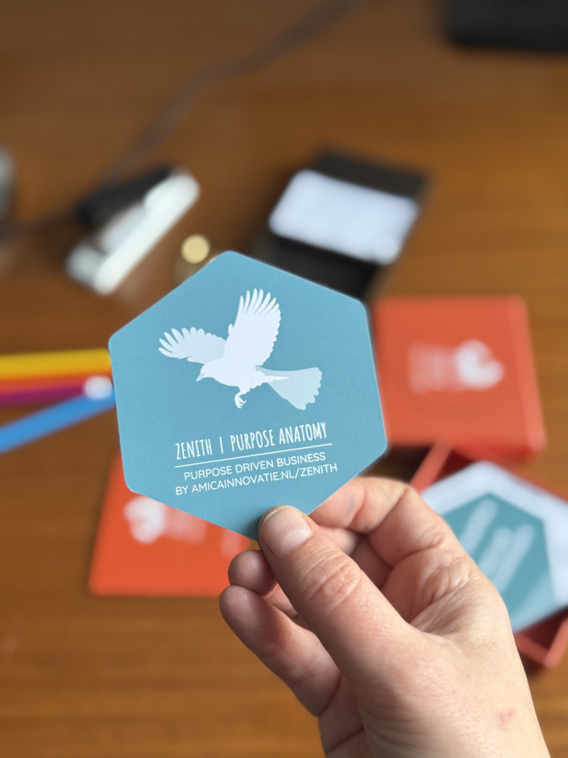 Ben jij op zoek naar het ‘waarom’ in je leven, je bestaansrecht, je missie? Of zoek je naar een gezamenlijke stip op de horizon voor de mensen in jouw bedrijf? Met het Zenith card deck stel je in een handomdraai je eigen purpose samen uit een selecte set kaarten. Elke purpose is opgebouwd uit 7 kaarten, die representeren wat je wil bereiken, waarom je dat wil bereiken en met welke skills je dat gaat bereiken. Zenith speel je in je eentje, in een kleine groep of in een begeleide sessie. Je hebt ongeveer een halfuur tot een uur nodig om je purpose te definiëren.