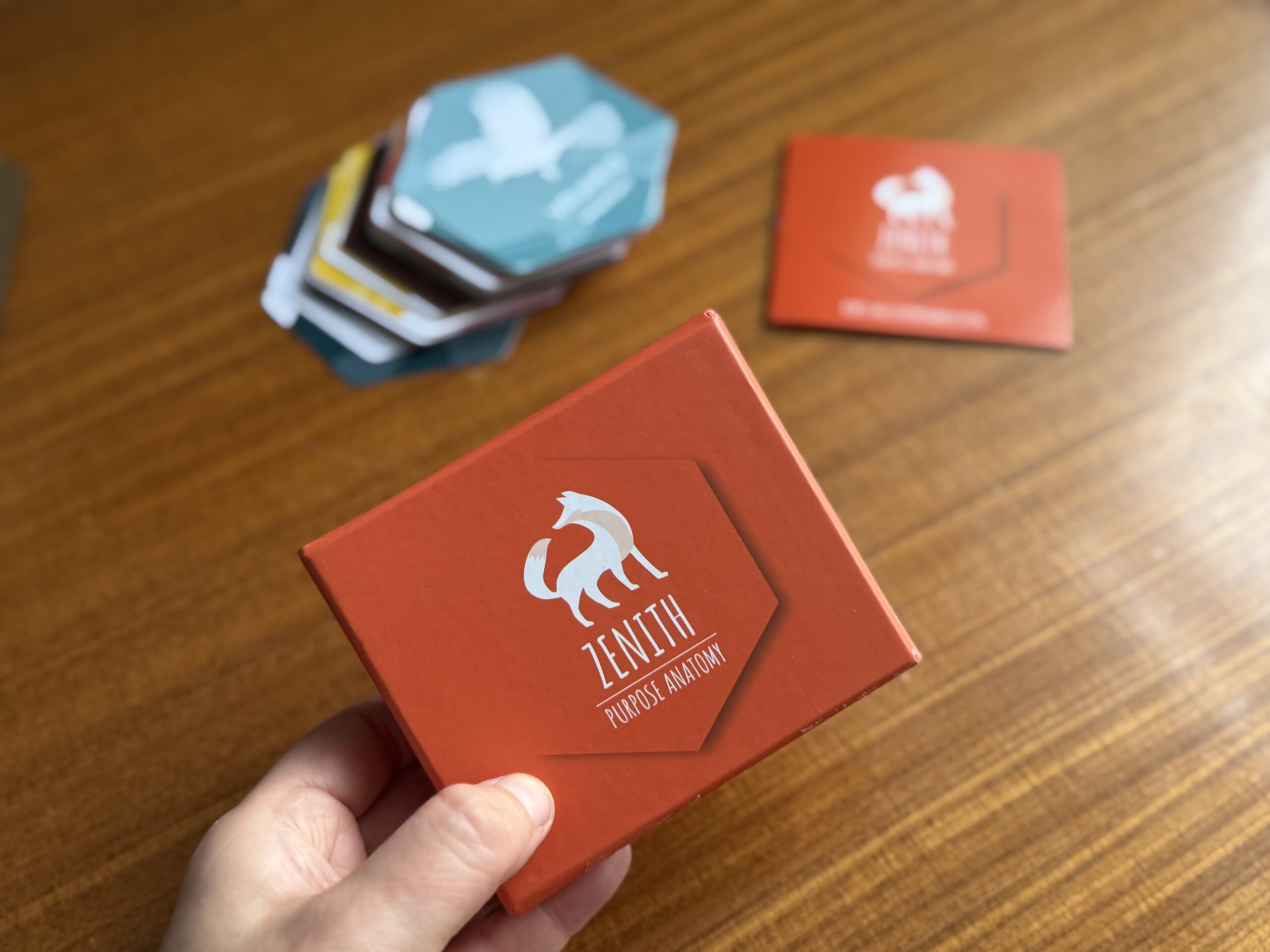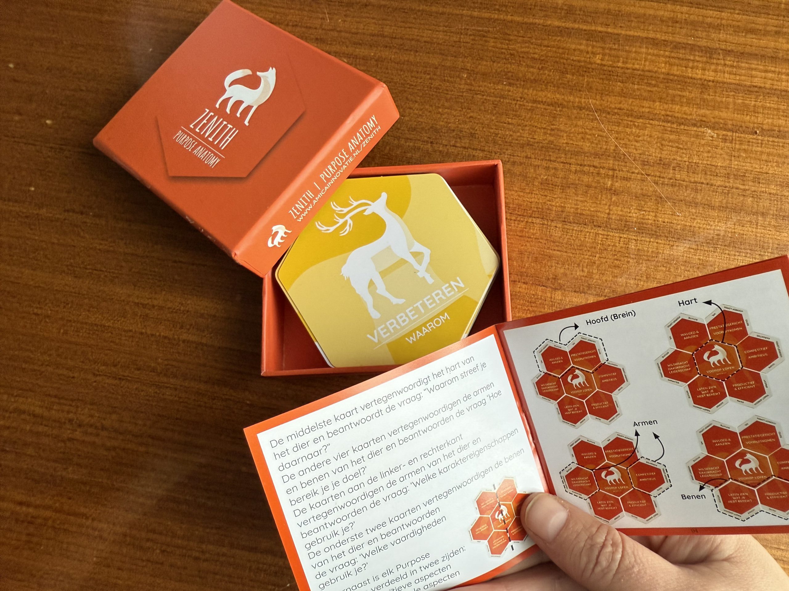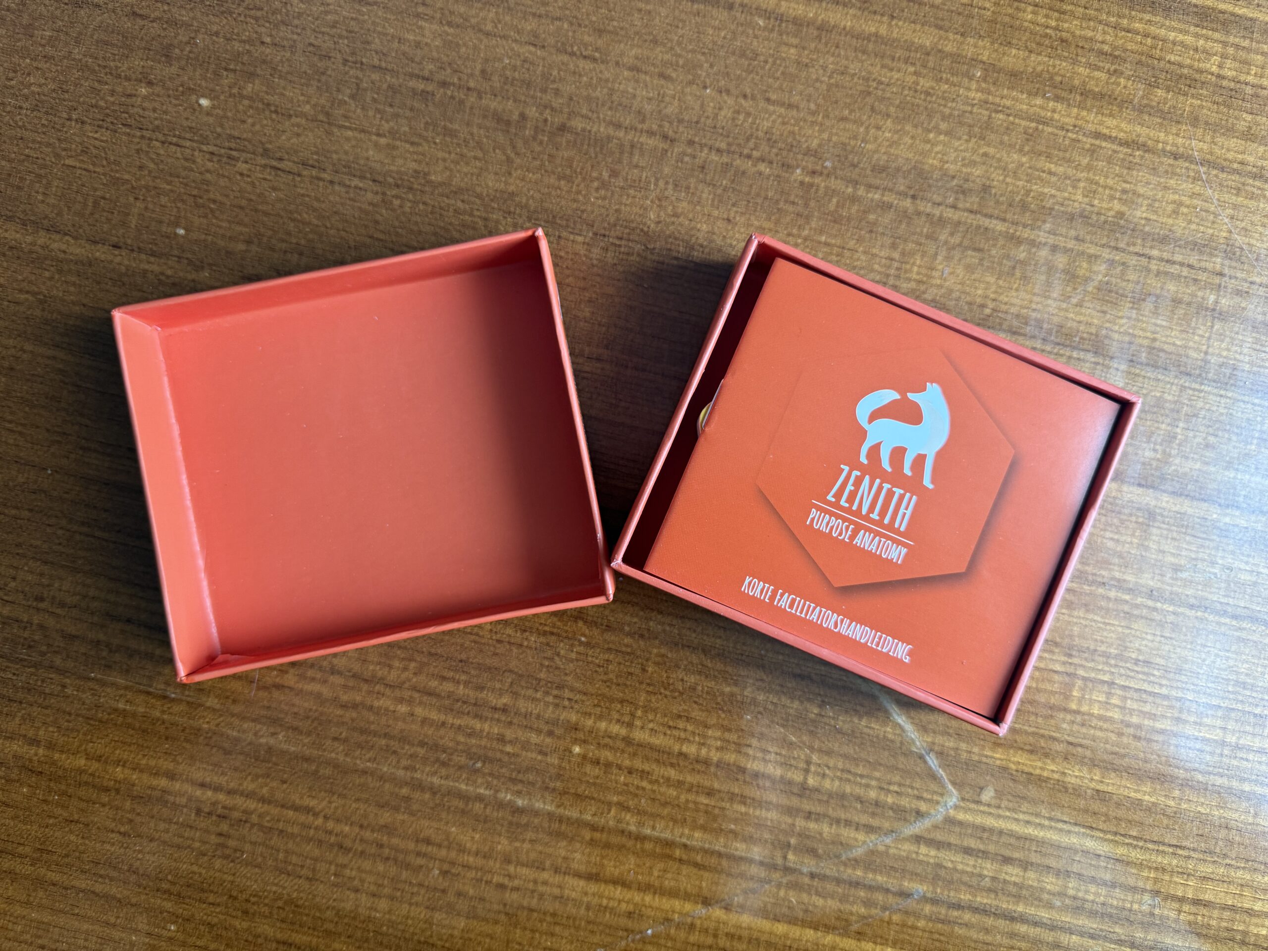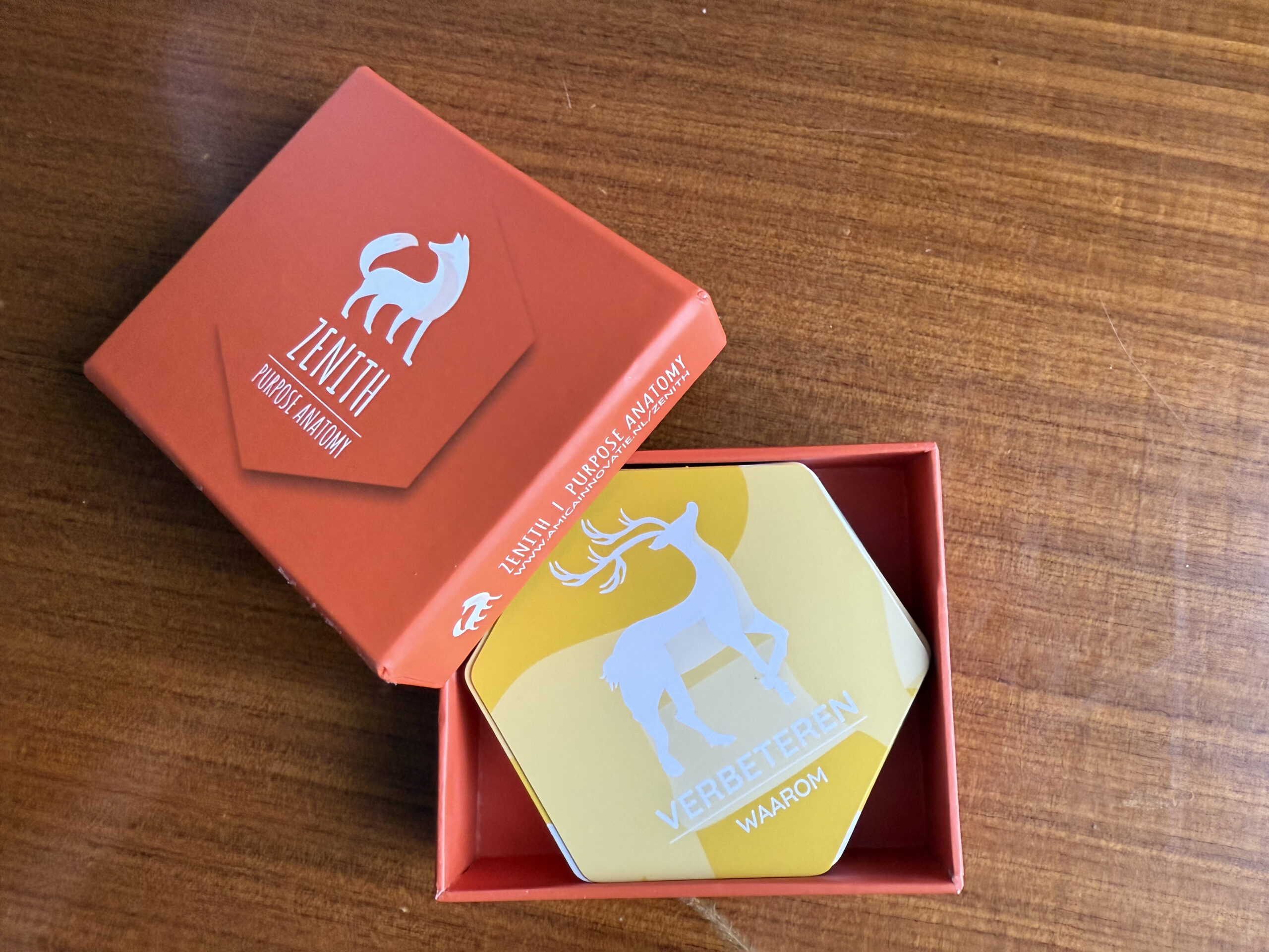 Ben jij op zoek naar het ‘waarom’ in je leven, je bestaansrecht, je missie? Of zoek je naar een gezamenlijke stip op de horizon voor de mensen in jouw bedrijf? Met het Zenith card deck stel je in een handomdraai je eigen purpose samen uit een selecte set kaarten. Elke purpose is opgebouwd uit 7 kaarten, die representeren wat je wil bereiken, waarom je dat wil bereiken en met welke skills je dat gaat bereiken. Zenith speel je in je eentje, in een kleine groep of in een begeleide sessie. Je hebt ongeveer een halfuur tot een uur nodig om je purpose te definiëren.